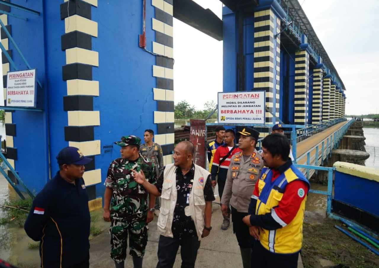 Penjabat Bupati Pati Henggar Budi Anggoro, Selasa (10/1), meninjau pintu air Bangunan Pengendali Bendung Wilalung Lama (BPBWL) di perbatasan Desa Kalirejo Undaan Kudus dan Desa Wilalung Demak.