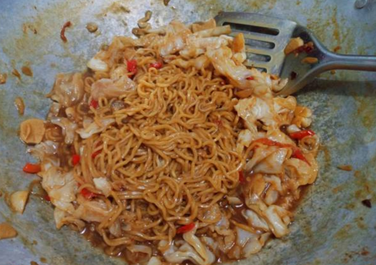3. Tuang sedikit air, tunggu hingga mendidih, lalu masukkan mi instan.